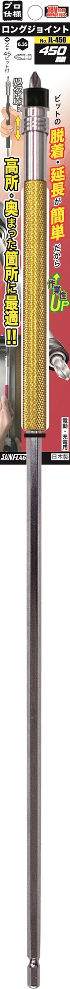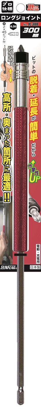 新商品のご案内 電動インパクト用ロングジョイント 2015年10月20日 最終更新日時 : 2025年4月4日 fujinishi01 新商品のご案内 電動インパクト用ロングジョイント 電動インパクトドライバーに接続して使用する工具です。 用途: 軽天、板金、内装作業等の 足場が組めない所、手が届かない所、狭くて手が入らない所等に便利です。先端が差し換え式なので、様々なビットが使用可能です。 ㈱新亀製作所 製 サイズは4種類取り扱っています。 JL-300(300mm)、JL-450(450mm)、JL-600(600mm)、JL-750(750mm)